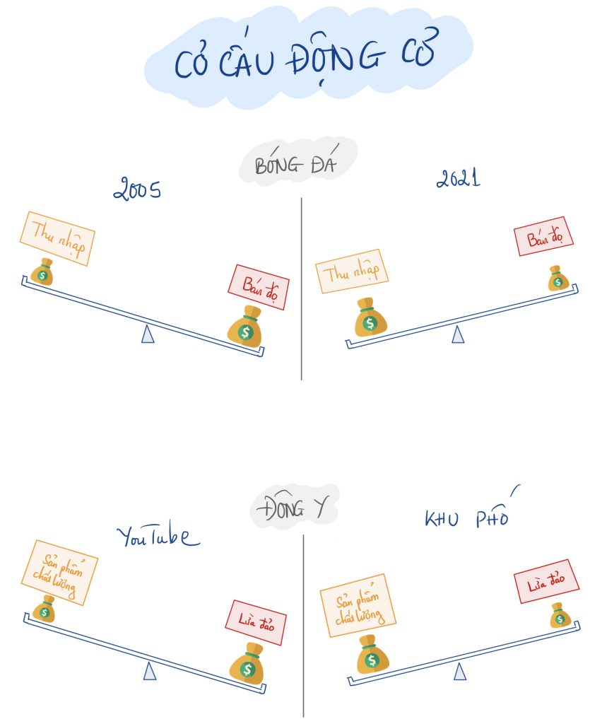 Quay lại câu chuyện “Thần Y”. Bác sĩ kiếm tiền từ việc bạn khỏi bệnh thì động cơ của họ là giúp bạn khỏi bệnh. Cửa hàng thuốc Đông Y ở khu phố bạn ở có động cơ giúp bạn khỏi bệnh, vì bạn sẽ giới thiệu/hoặc ngăn cản các khách hàng khác trong khu phố. Còn đối với các “thần y” quảng cáo nhan nhản trên YouTube, họ không kiếm tiền từ việc bạn khỏi bệnh, mà kiếm tiền từ việc bạn tiêu thụ “thuốc”. Họ có lừa bạn thì bạn cũng không cảnh báo người mua hàng tiếp theo được. Khi đối diện với tình huống như vậy, khôn ngoan là bạn hãy vô cùng cẩn trọng, trên cả cẩn trọng. Động cơ kiếm tiền là guồng quay mạnh mẽ nhất của cả thế giới và bạn cần hiểu nó để tự bảo vệ bản thân.