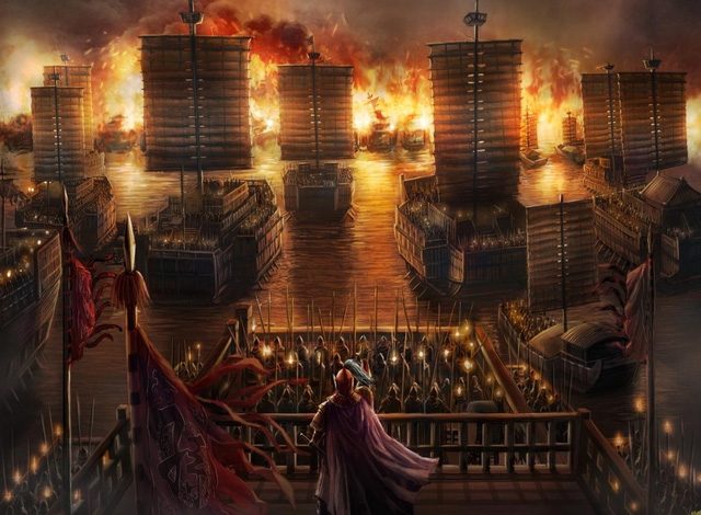Bộ truyện sử "Tam Quốc Diễn Nghĩa" mô tả trận Xích Bích là một trận đánh quyết định đến cục diện thời Tam Quốc. Đây là trận cuối thời Đông Hán diễn ra giữa liên quân Tôn Quyền-Lưu Bị với quân đội lấy danh nghĩa triều đình của Tào Tháo. Dù Tào Tháo có ưu thế lớn về quân số nhưng Trận Xích Bích kết thúc với chiến thắng quyết định thuộc về phe Tôn-Lưu. Chiến thắng này giúp củng cố vị thế cho Tôn Quyền và Lưu Bị ở hai bờ Trường Giang, tạo cơ sở cho sự hình thành hai nước Thục Hán và Đông Ngô. Trong nhiều chuyển thể phim về trận Xích Bích có cảnh Khổng Minh, vị chiến lược gia quan trọng của Lưu Bị, đứng trước sông Trường Giang phẩy nhẹ cánh quạt mà gió Đông nổi lên, cuốn những chiến thuyền lửa của quân Tôn-Lưu đâm thẳng vào tiêu diệt các chiến thuyền của quân Tào Tháo, gây nên chuyển biến lớn về cục diện.