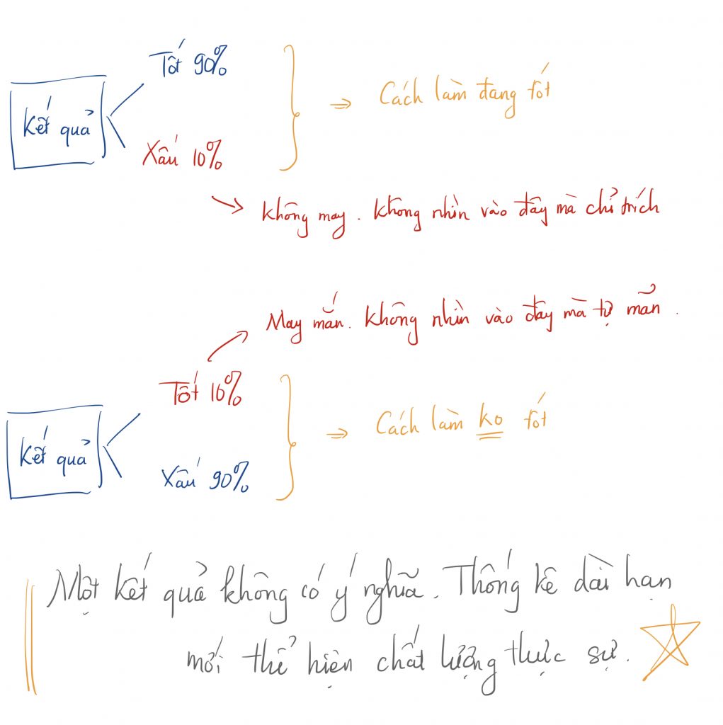 Vậy bạn đã tổng kết kết quả dài hạn 1 cách khách quan về sức khoẻ, công việc, mối quan hệ, hiệu quả kinh doanh… để biết mình đang thực sự làm tốt hay ăn may, làm chưa tốt hay chỉ đơn thuần là xui xẻo? Cải thiện phương pháp là cốt lõi cho kết quả dài hạn.